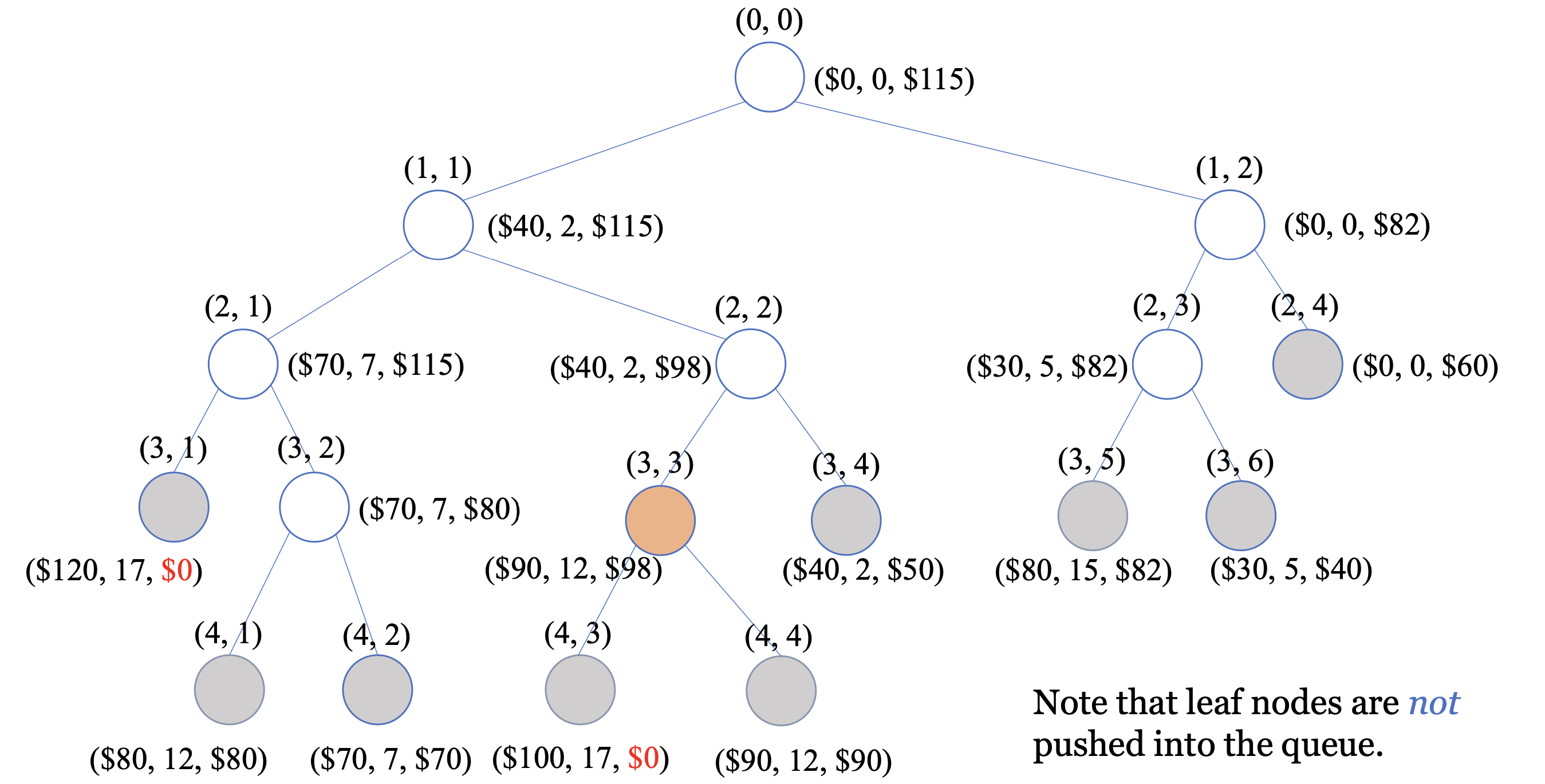 - (3,3)의 자식노드를 방문하므로 우선순위 큐에서 삭제한다.