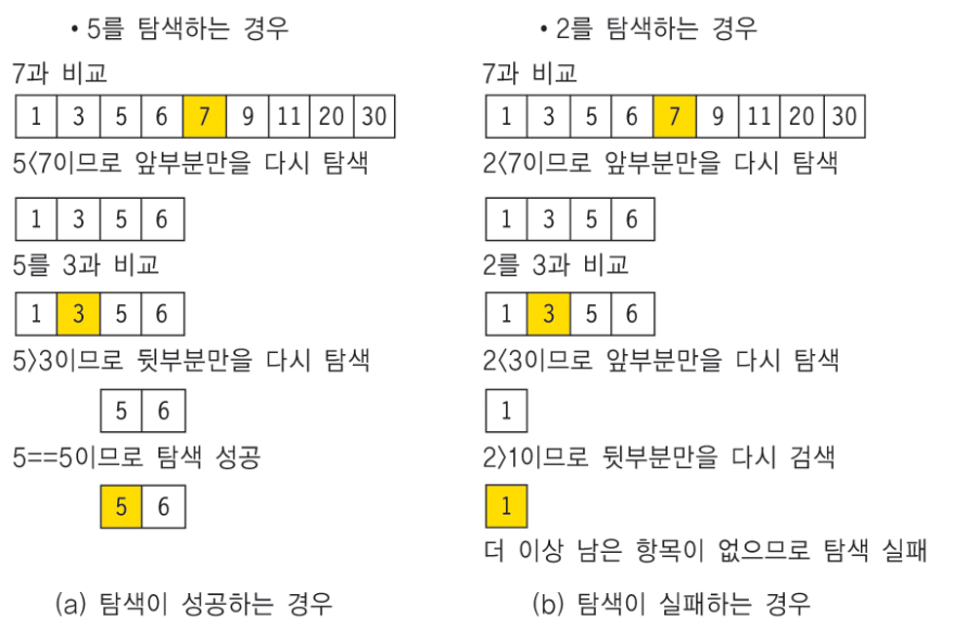 : 배열의 중앙에 있는 값을 검사해 찾고자 하는 값이 오른쪽인지 왼쪽인지 알아내는 방법